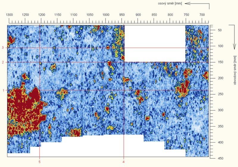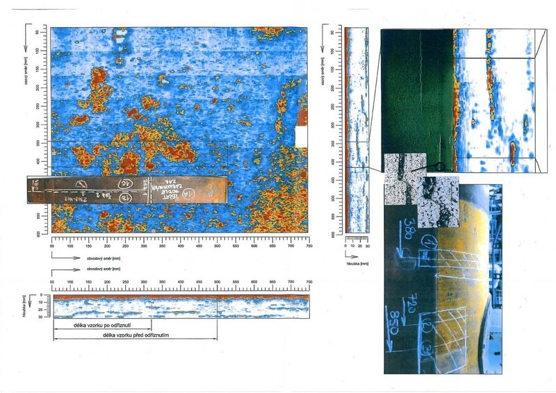 Vhodnou nedestruktivní metodou pro zjišťování tohoto poškození je ultrazvuková metoda UT PA s použitím manipulátoru a s naskládáním celkové obrazu z jednotlivých záznamů. Počítačové zpracování umožňuje „rozřezání“ 3D modelu vytvořeného ze záznamu.